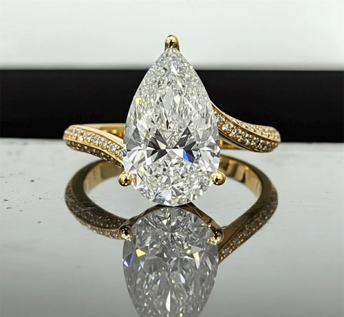 6.00ct Pear Cut Lab Grown Diamond Ring, IGI Certified, Pear Diamond Ring