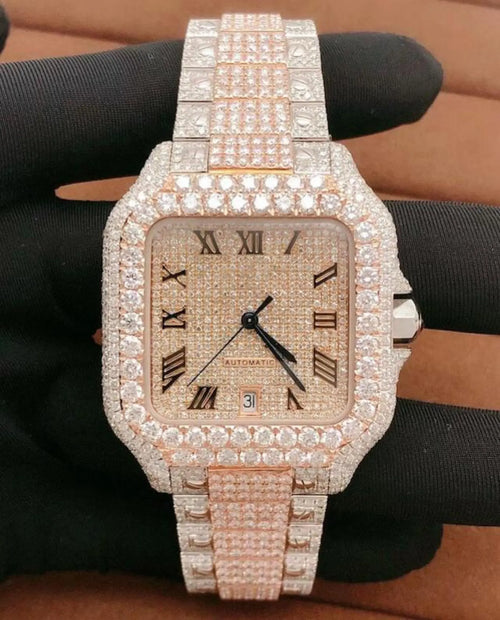 40mm Gold Stainless Steel Box Watch with VVS1 Moissanite diamond Custom watches