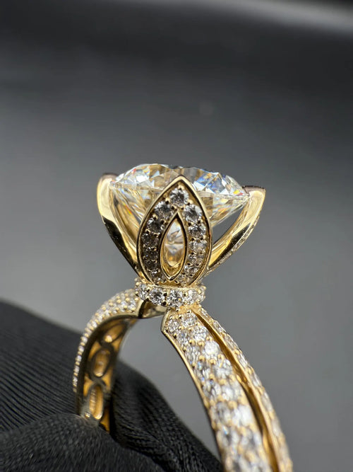 3.00 CT Round Lab Grown Diamond Ring | Micro Pave, V Prong Setting